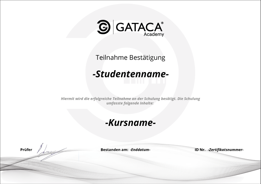 Nach Abschluss der Schulung erhalten die Teilnehmer eine offizielle Teilnahmebestätigung. Dieses dient als Nachweis für die erworbenen Kenntnisse und kann bei Bedarf gegenüber Arbeitgebern oder Aufsichtsbehörden vorgelegt werden.